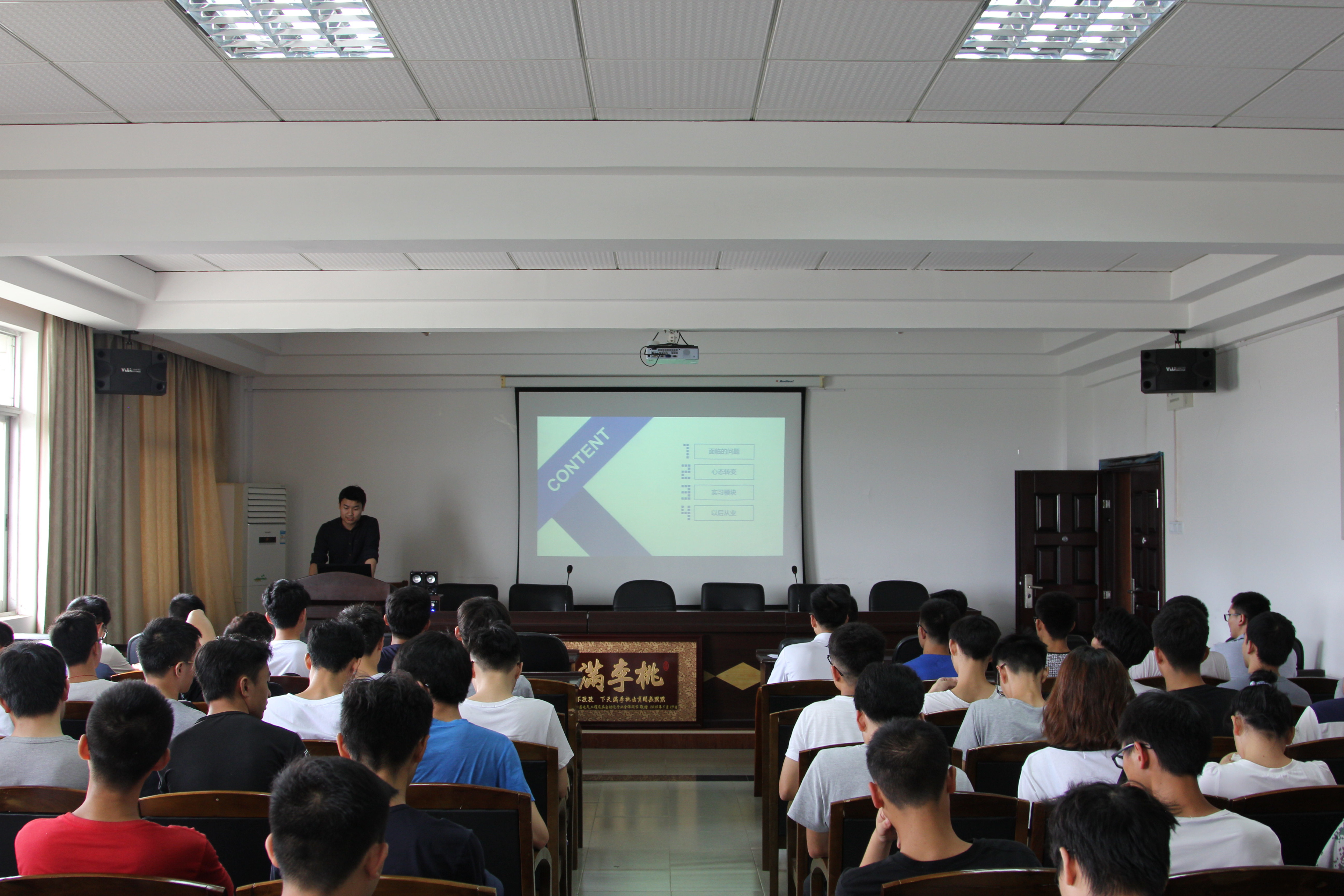 电气工程及其自动化卓越班实行“3+1”模式,即进行三年的大学课程学习和一年的企业实习。报告会期间,吉鹏分享了自己在大四期间的实习经历及其宝贵的实习经验。他还罗列了同学们在实习前后普遍存在的问题,并对此做出详细解答,让在场同学受益良多。随后,邓优平就实习期间准备考研这一问题向同学们提出了一些建议。他提到,在实习期间准备考研的同学要充分利用休息时间,掌握高效正确的学习方法备考,其中最主要的是要保持坚定的信念和决心。最后,赵延明向同学们强调了实习期间的安全问题,并提到大四的实习经历不仅会加强自身专业技能,还能为大家以后走向工作岗位积累经验。此外,他还详细介绍了部分企业的基本情况,便于大家了解。