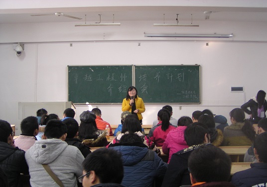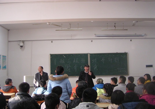 会上,院长周少武教授阐述了国家实施卓越工程师教育培养计划的历史背景和培养特点,并从社会发展需求和学校培养人才现状,阐明了我院举办卓越班的重大意义。他说:“如今学校所教授的知识和企业所需要的并不匹配,而卓越班则着重培养学生适应社会需要的工程能力和创新能力”。副院长欧青立教授举例说明了我院卓越工程师班需要学习到哪些知识以及学校可以提供什么样的实习岗位,并强调卓越班就是教学生把理念转化为产品的集体。会上同学们还就相关问题进行了自由提问,周院长、欧副院长分别给予了回答。当被问及参加卓越班是否影响考研时,周院长回答卓越班不但不影响考研,而且还为同学们提供更多锻炼机会。